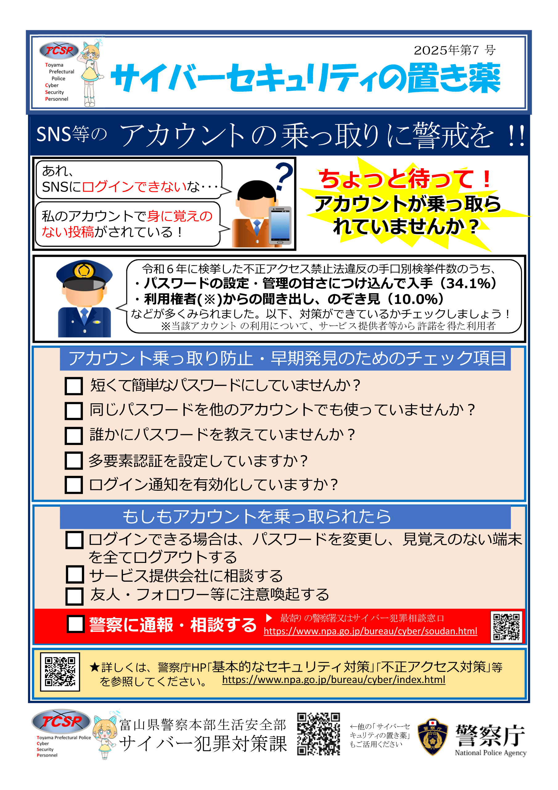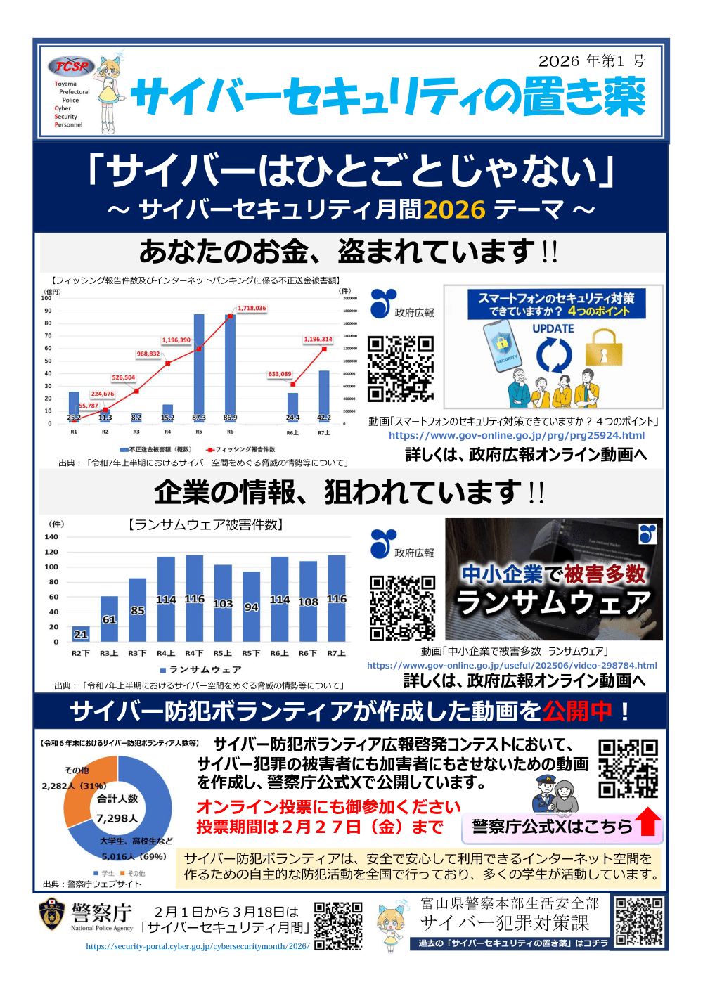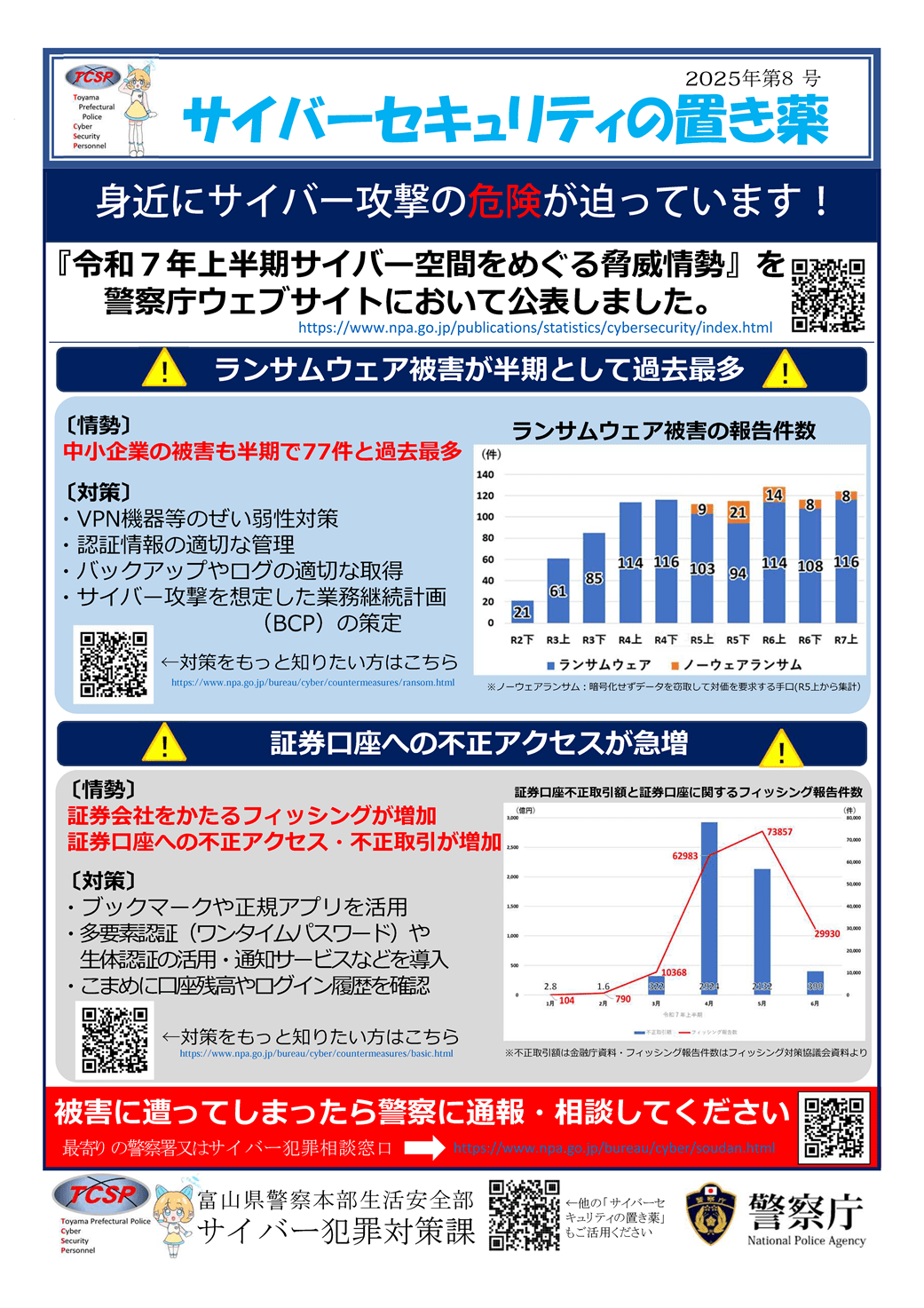 - サイバーセキュリティの置き薬 (富山県警察本部サイバー犯罪対策課)