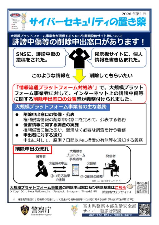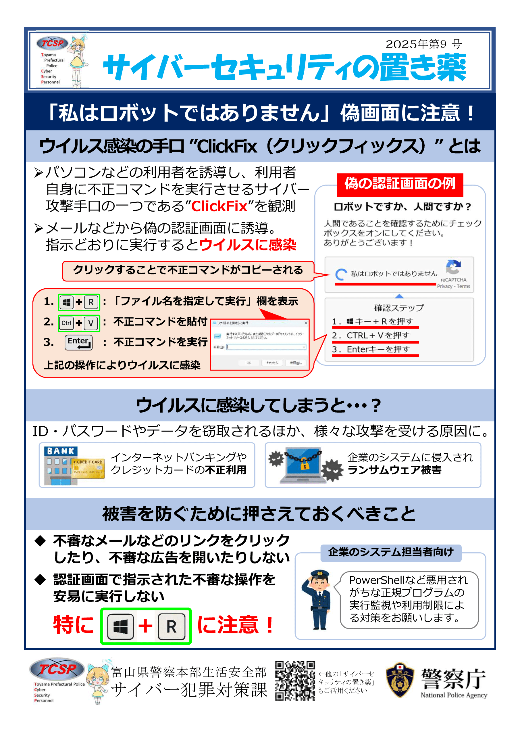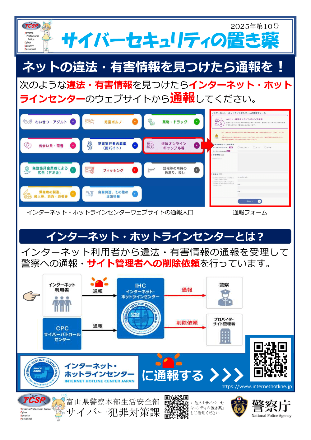 - サイバーセキュリティの置き薬 (富山県警察本部サイバー犯罪対策課)